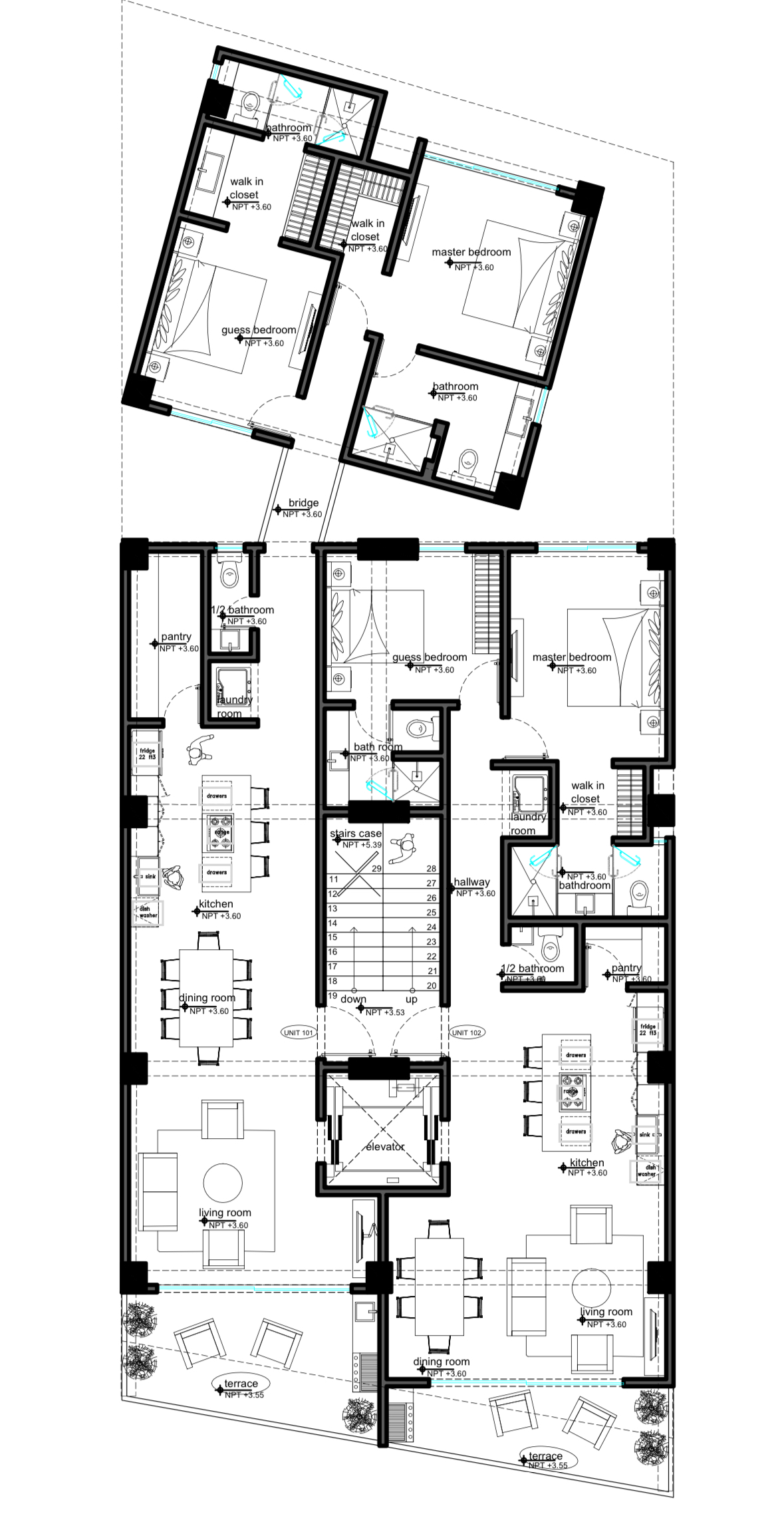 Boutique development of only 12 units in the heart of Old Town Puerto Vallarta and close to restaurants, cafés, entertainment, boutiques and only 4 blocks from the beach. Featuring 2-bedroom, 2.5-bathroom, 12 foot ceilings, central heat and air*, windows in all the bedrooms and baths, terraces large enough to dine on, private entrances directly off the elevator, walk in pantries and marble floors*. The rooftop has a sunken pool with ocean views and a bar bbq area.